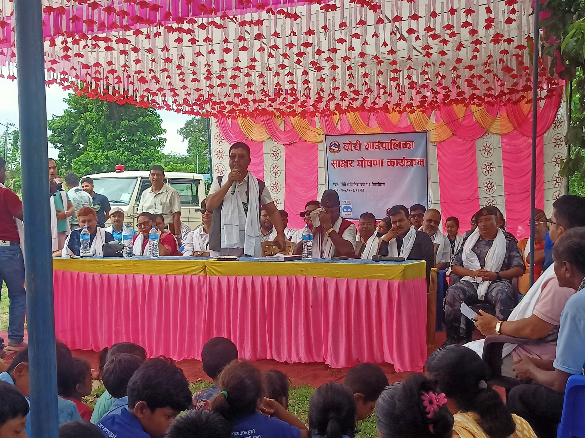 असार २१, ठोरी (पर्सा) — पर्सा जिल्लाको ठोरी गाउँपालिका औपचारिक रूपमा जिल्लाकै पहिलो साक्षर पालिका घोषित भएको छ। शनिबार ठोरी–३, शिकारीवासमा आयोजित एक विशेष समारोहमा गाउँपालिका अध्यक्ष लालबहादुर श्रेष्ठले ठोरीलाई साक्षर पालिकाको रूपमा घोषणा गर्नुभएको हो। नेपाल सरकारद्वारा निर्धारण गरिएको मापदण्ड अनुसार १५ देखि ६० वर्ष उमेर समूहका कम्तीमा ९५ प्रतिशत व्यक्तिहरू साक्षर भएको आधारमा पालिकालाई साक्षर घोषणा गर्न सकिन्छ। सोही आधारमा ठोरी गाउँपालिका मधेस प्रदेशका १३६ पालिकामध्ये सातौँ र पर्सा जिल्लाका १४ पालिकामध्ये पहिलो साक्षर पालिका बन्न सफल भएको हो। साक्षरता घोषणासँगै सम्पन्न कार्यक्रमलाई थप अर्थपूर्ण बनाउन विविध सामाजिक र विकास निर्माणसम्बन्धी कार्यहरू पनि सञ्चालन गरिएका थिए। जिल्ला प्रशासन कार्यालय पर्साको आयोजनामा भएको उक्त कार्यक्रममा प्रमुख जिल्ला अधिकारी गणेश अर्यालले जनता आवास कार्यक्रम अन्तर्गत पाँचवटा घरको शिलान्यास, तटबन्ध निर्माण, र वृक्षारोपण कार्यक्रमको उद्घाटन गर्नुभएको थियो। त्यसै अवसरमा सञ्चालन गरिएको निःशुल्क स्वास्थ्य शिविरमा वीरगन्जबाट आएका चिकित्सक टोलीले दर्जनौँ बिरामीहरूको स्वास्थ्य परीक्षण गरी निःशुल्क औषधि वितरण गरेका थिए। साथै, केही नागरिकलाई नागरिकता वितरण, विद्यार्थीहरूलाई झोला र स्टेसनरी सामग्री, तथा १५ परिवारलाई सुधारिएको चुलो समेत वितरण गरिएको थियो। कार्यक्रम गाउँपालिका अध्यक्ष लालबहादुर श्रेष्ठको सभापतित्वमा सम्पन्न भएको थियो भने जिल्ला समन्वय समिति पर्साका प्रमुख निरञ्जन प्रसाद साह प्रमुख अतिथि र प्रमुख जिल्ला अधिकारी गणेश अर्याल विशिष्ट अतिथिका रूपमा सहभागी हुनुहुन्थ्यो। कार्यक्रममा गाउँपालिका उपाध्यक्ष गोकुल कुमारी रेग्मी, प्रमुख प्रशासकीय अधिकृत धर्मराज थापा, नेपाल पत्रकार महासङ्घ पर्साका अध्यक्ष ओमप्रकाश खनाल, स्वास्थ्य कार्यालय पर्साका प्रमुख विनोद झा, तथा नारायणी अस्पतालका मेडिकल सुपरिन्टेन्डेन्ट डा. चुमनलाल दास लगायतको उपस्थिति रहेको थियो। शिक्षा प्रमुख भुपाल जोशीले स्वागत मन्तव्य राख्नुभएको थियो भने कार्यक्रमको सहजीकरण चिरञ्जीवी सापकोटाले गर्नुभएको थियो।