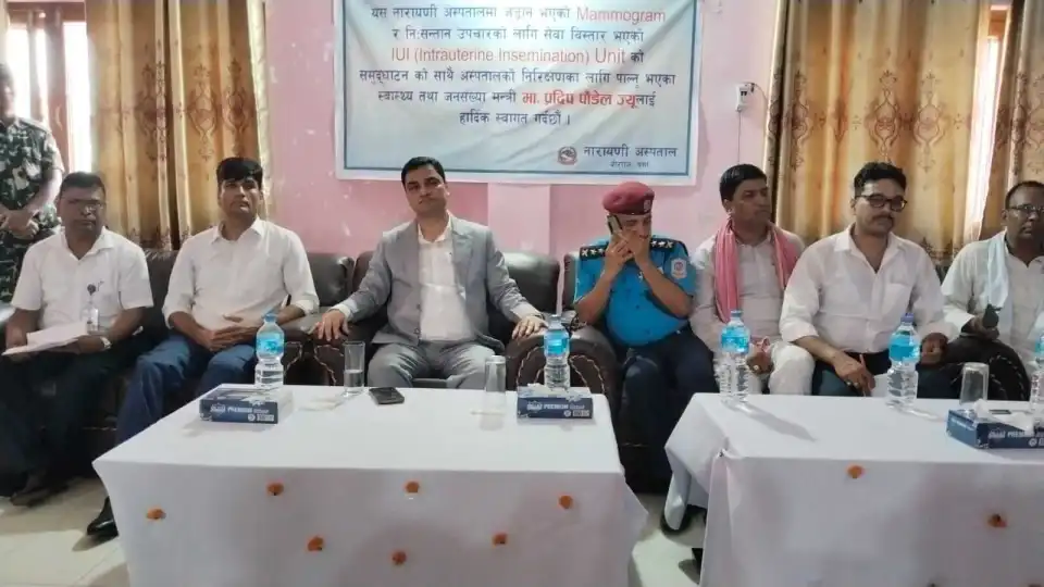 वीरगञ्ज, २९ असार – वीरगञ्जस्थित नारायणी अस्पतालमा स्तन क्यान्सरको जाँच ९म्यामोग्राफी० र निसन्तान दम्पतीका लागि बाँझोपनको उपचार ९आईयूआई० सेवा सुरु गरिएको छ। आइतबार संघीय सरकारका स्वास्थ्य तथा जनसंख्यामन्त्री प्रदीप पौडेलले सेवाको उद्घाटन गरेका हुन्। अस्पतालका सूचना अधिकारी डा। उदयनारायण सिंहका अनुसार, मधेस प्रदेशमा सरकारी स्तरबाट यी सेवा सुरु गरिएको पहिलोपटक हो। मेसु डा. चुमनलाल दासले यसले निसन्तान दम्पतीलाई राहत दिने अपेक्षा गर्दै अस्पतालमा पाठेघरको मुखको क्यान्सर परीक्षण, स्क्रिनिङ तथा केमोथेरापी सेवा पहिलेदेखि नै सञ्चालनमा रहेको जानकारी दिए। मन्त्री पौडेलले नारायणी अस्पतालको सेवा गुणस्तर बढाइ अबको एक वर्षभित्र नमूना अस्पताल बनाउने लक्ष्य लिइएको बताए। उनले चाँडै मुटु शल्यक्रिया सेवा सुरु हुने जानकारीसमेत दिए। कार्यक्रममा सहभागी अस्पतालका स्वास्थ्यकर्मी र कर्मचारीहरुलाई निर्देशन दिदैं मन्त्री पौडेलले भने,‘ डाक्टरहरुले बिहान १० देखि साँझ ५ बजेसम्म अस्पतालमा ड्युटी गर्नैपर्छ ।त्यसमा कुनै सम्झौता हुदैन ।’अस्पताललाई कर्र्मचारी भर्तीको केन्द्र नबनाउनपनि पनि उनले निर्देशन दिए । कार्यक्रममा अस्पतालका मेसु दासले ५०० शैयाको अस्पताल भवनको मुद्दा सर्वोच्च अदालतबाट टुंगो लागिसकेको र भवन निर्माणका लागि बजेट पनि विनियोजन भइसकेकाले छिट्टै शिलान्यासका लागि मन्त्री पौडेलको ध्यानाकर्षण गराए । कार्यक्रममा जिल्ला प्रशासन, प्रहरी, राजनीतिक दलका प्रतिनिधि र अस्पतालका कर्मचारीहरूको उपस्थिति रहेको थियो।