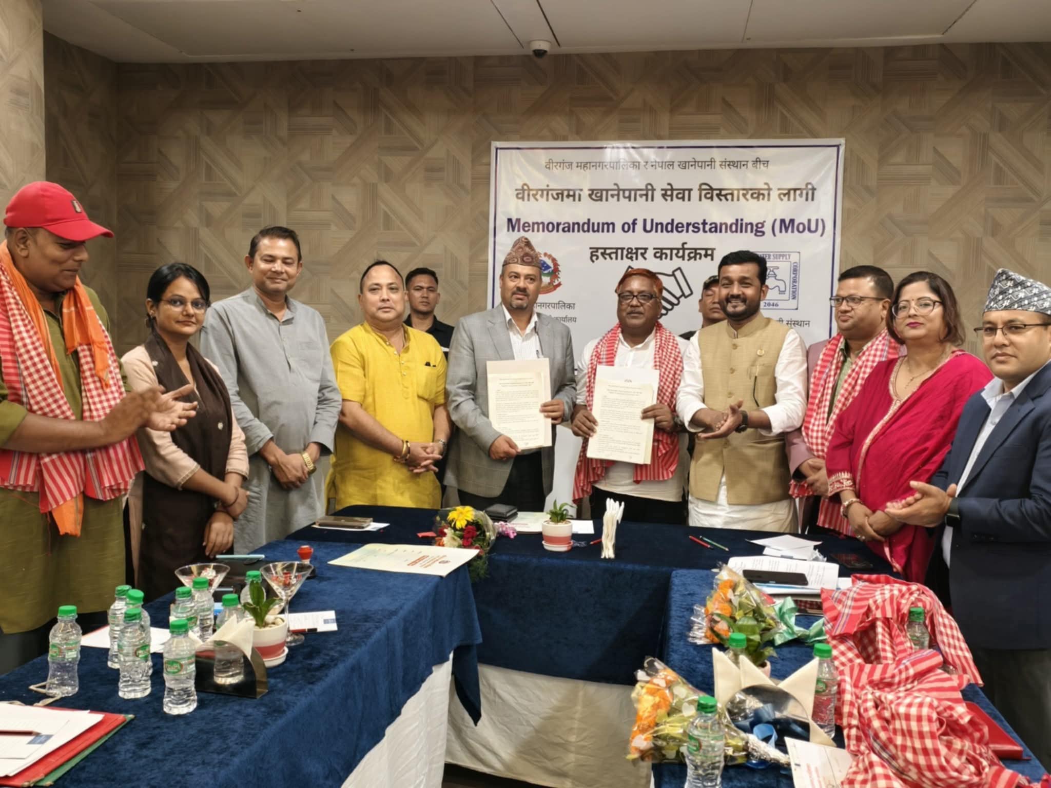 वीरगन्जमा खानेपानीको दीर्घकालीन समस्या समाधान गर्ने उदेश्यले खानेपानी मन्त्री प्रदीप यादव र वीरगन्ज महानगरका मेयर राजेशमान सिंहको अग्रसरतामा संस्थान र महानगरबीच भएको समझदारी पत्रमा हस्ताक्षर गरिएको हो ।समझदारीपत्रमा संस्थानको तर्फबाट संस्थानका महाप्रबन्धक अर्जुनबाबु ढकाल र वीरगन्ज महानगरपालिकाको तर्फबाट प्रमुख प्रशासकीय अधिकृत अरबिन्द लाल कर्णले हस्ताक्षर गरेका छन् अब खानेपानी संस्थानको नयाँँ धारा जडानमा लाग्ने शुल्क महानगरपालिकाले व्यहोर्ने मेयर सिंहले बताए । बिहीबार भएको सम्झौताले वीरगन्ज महानगरपालिका भित्रका प्रत्येक घरधुरीमा स्वच्छ, सुरक्षित र दिगो खानेपानीको पहुँच सुनिश्चित गर्ने परिकल्पना गरिएको उनले बताए ।