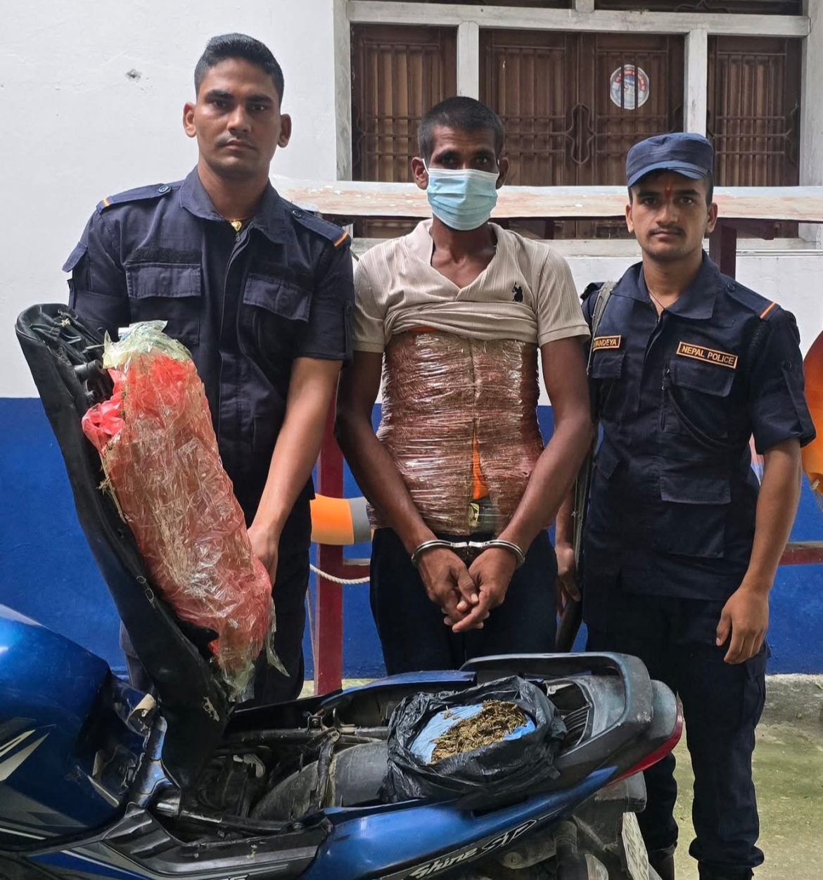 इलाका प्रहरी कार्यालय पटेर्वा सुगौलीबाट खटिएको प्रहरी टोलीले चेकजाँचको क्रममा बेलुवाबाट देवरवाना तर्फ जाँदै गरेको BR05AG6805 नम्बरको मोटरसाइकल तथा त्यसका चालकलाई शंका लागेर रोकेर जाँच गर्दा ८.४४० किलोग्राम लागुऔषध गाँजा फेला पारेको हो।