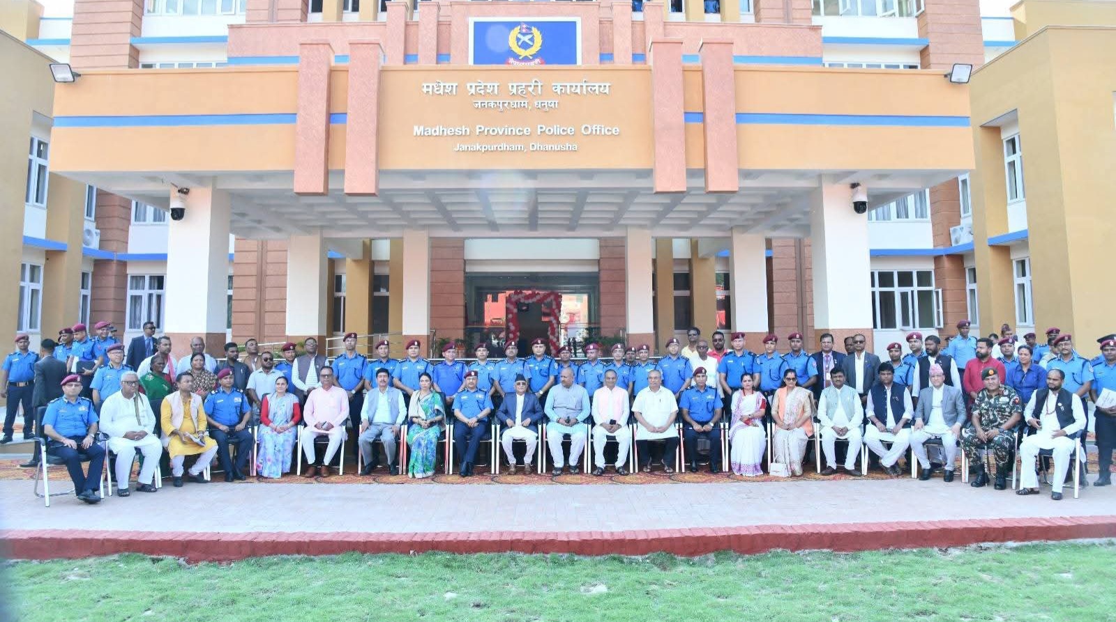 ३० श्रावन जनकपुरधाम — प्रधानमन्त्री केपी शर्मा ओलीले मधेश प्रदेश प्रहरी कार्यालय जनकपुरधामको नवनिर्मित प्रशासनिक भवनको शुक्रबार विशेष समारोहबीच उद्घाटन गर्नुभएको छ। उद्घाटनपछि उहाँले भवनको विभिन्न भागको अवलोकन समेत गर्नुभयो।