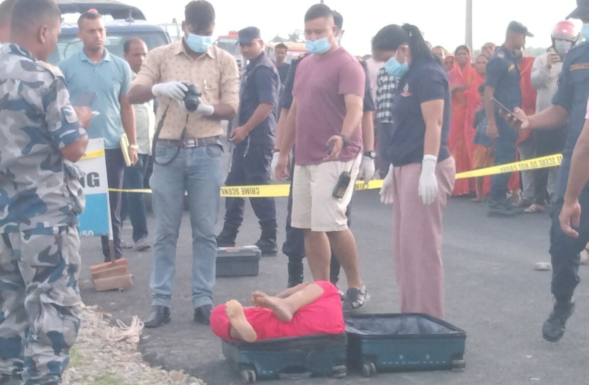 रौतहटको गौर ८ भाद्र –रौतहटको सिरसिया सडकखण्ड अन्तर्गत मुडवलबा मोड नजिक शनिबार राति १०:३० बजे सुटकेशभित्र एक महिलाको शव फेला परेको छ। जिल्ला प्रहरी कार्यालय रौतहटका अनुसार रस्सीले बाँधिएको अवस्थामा भेटिएको शव करिब २५–३० वर्ष उमेरकी महिलाको हुनसक्ने अनुमान गरिएको छ।