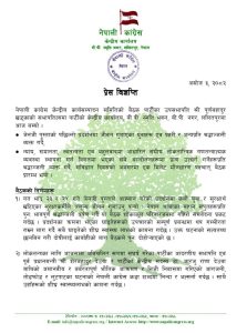 छलफलपछि नेपाली कांग्रेसले पाँच बुँदे निर्णय सार्वजनिक गरेको छः