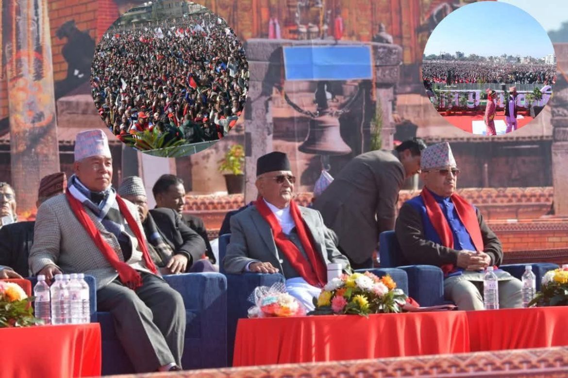 काठमाडौँ, २७ मङ्सिर — नेकपा (एमाले) का अध्यक्ष केपी शर्मा ओलीले भक्तपुरको सल्लाघारीमा देखिएको विशाल जनसहभागितालाई सामान्य भिडभाडका रूपमा नबुझ्न चेतावनी दिएका छन्। शनिबार पार्टीको ११ औँ राष्ट्रिय महाधिवेशनको उद्घाटन सत्रलाई सम्बोधन गर्दै उनले एमालेको शक्तिलाई ‘अन्डरएसटिमेट’ नगर्न चुनौती दिएका हुन्।