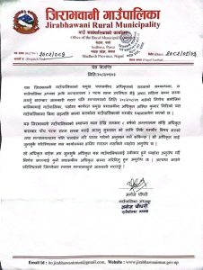पर्सा, ६ पुस – पर्साको जिराभवानी गाउँपालिकाका अध्यक्ष अनोज चौधरीले सरकारले गरेका प्रमुख प्रशासकीय अधिकृत सरुवा निर्णय मान्न अस्वीकार गर्दै ठाडै चुनौती दिएका छन्। संघ सरकारको सामान्य प्रशासन मन्त्रालयले गत मंगलबार कालिकामाई गाउँपालिकामा कार्यरत अमित गिरिलाई जिराभवानी पठाएर वर्तमान अधिकृत राज कुशवाहालाई कालिकामाई सरुवा गरेको थियो। अध्यक्ष चौधरीले आफ्नो सहमति बिना गरिएको सरुवालाई अस्वीकृत गर्दै फेसबुकमार्फत सरकारलाई चेतावनी दिएका छन्।