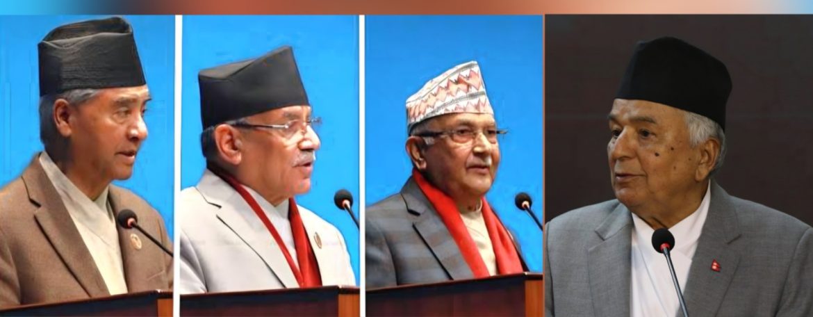 राष्ट्रपतिको कार्यालयका अनुसार आज दिउँसो ३ बजे कांग्रेस सभापति शेरबहादुर देउवा, एमाले अध्यक्ष केपी शर्मा ओली र नेकपाका संयोजक पुष्पकमल दाहाल ‘प्रचण्ड’सँग छलफल हुने कार्यक्रम तय भएको छ ।