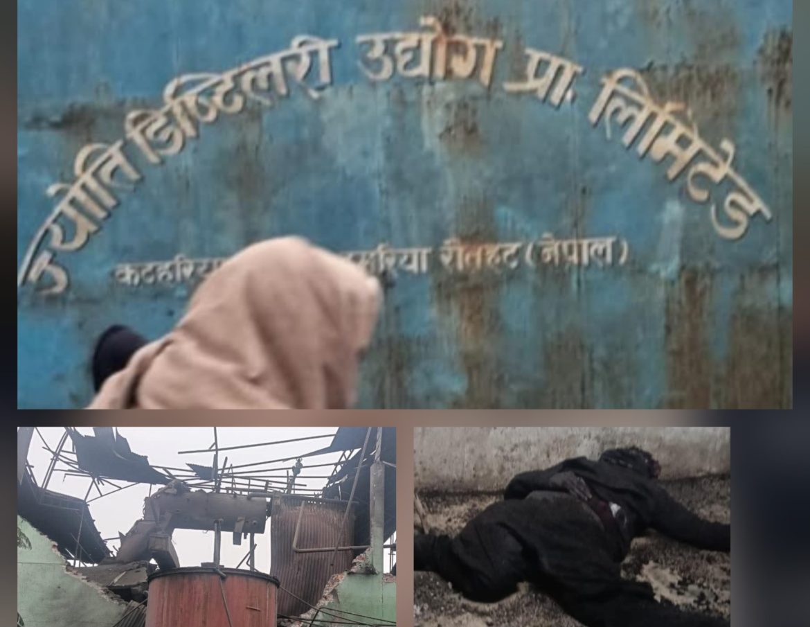 रौतहट, १२ पुस — रौतहट जिल्लाको कटहरिया नगरपालिका–९ मा रहेको ज्योति डिस्टिलरी उद्योग प्रा ली मा शनिबार बिहान ठूलो बोइलर विस्फोट हुँदा एक जनाको घटनास्थलमै मृत्यु भएको छ भने पाँच जना कामदार घाइते भएका छन्।