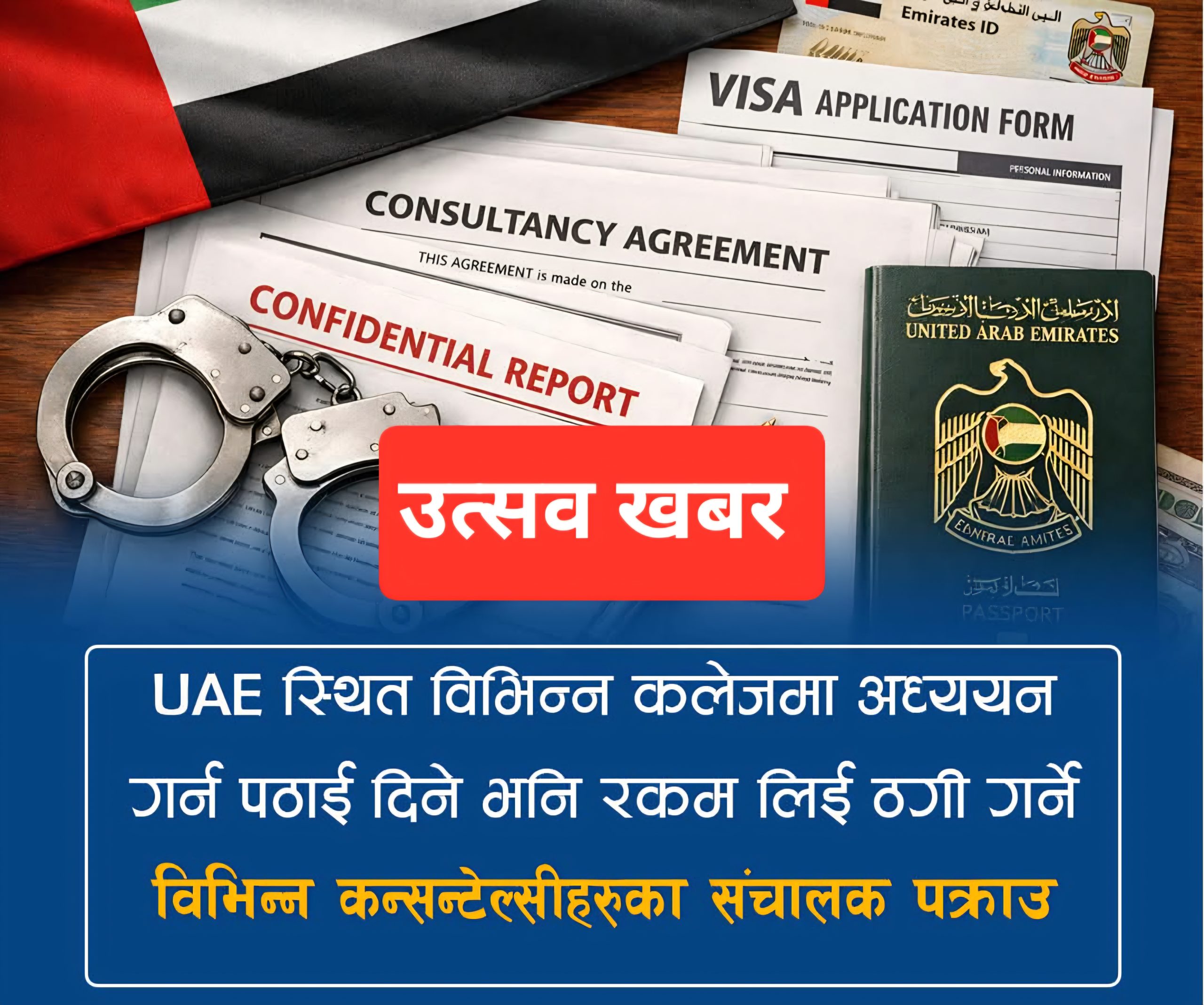 नेपाल प्रहरी प्रधान कार्यालय अन्तर्गत केन्द्रीय अनुसन्धान ब्युरो (CIB) ले जारी गरेको प्रेस विज्ञप्तिअनुसार, यी कन्सल्टेन्सीहरूले यूएईस्थित कलेजमा क्रेडिट ट्रान्सफर, अकाडेमिक कोर्स, र ट्रेनिङ इन्स्टिच्युटमा भर्ना गराइदिने भन्दै प्रतिव्यक्ति ४ लाखदेखि २२ लाख रुपैयाँसम्म रकम असुली गरेको खुल्न आएको हो।