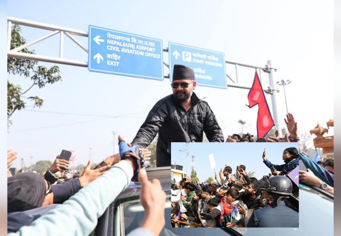 नेपालगञ्ज, १२ माघ — राष्ट्रिय स्वतन्त्र पार्टी (रास्वपा) का वरिष्ठ नेता बालेन शाह सोमबार पहिलो पटक बाँकेको नेपालगञ्ज आइपुगेका छन्। शाह नेपालगञ्ज विमानस्थलमा ओर्लंदा उनको स्वागतका लागि ठूलो संख्यामा समर्थक तथा सर्वसाधारणको भिड जम्मा भएको थियो।
