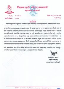 काठमाडौं, २९ माघ – आफूलाई ‘एक्स्ट्रिमिस्ट ग्रुप अफ नेपाल (ईजीएन)’ को अध्यक्ष बताउँदै अख्तियार दुरुपयोग अनुसन्धान आयोग (अधिकार) का प्रमुख लगायत अन्य व्यक्तिलाई ज्यान मार्ने धम्की दिने एक जना व्यक्ति फिलिपिन्सबाट पक्राउ परेका छन्।