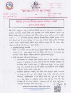 प्रशासनले सूचना जारी गर्दै निर्वाचन शान्तिपूर्ण, निष्पक्ष र भयरहित वातावरणमा सम्पन्न गर्न सिमानामा कडाइ गरिएको जनाएको हो। निर्वाचन अवधिभर अत्यावश्यक सेवाबाहेकका आवतजावतमा रोक लगाइनेछ भने सुरक्षा निकायलाई उच्च सतर्कतामा राखी मुख्य नाकाहरूमा थप सुरक्षाकर्मी परिचालन गरिने प्रशासनले जनाएको छ।