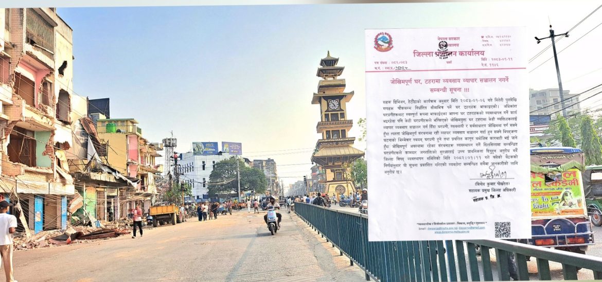 चेतावनीलाई बेवास्ता गरी जोखिमयुक्त स्थानमा व्यवसाय सञ्चालन गरिएमा सम्भावित दुर्घटनाको सम्पूर्ण जिम्मेवारी सम्बन्धित घरधनी स्वयंले वहन गर्नुपर्ने प्रशासनले जनाएको छ।